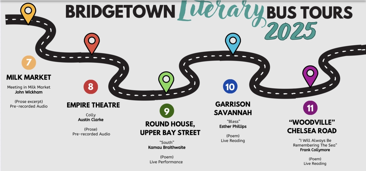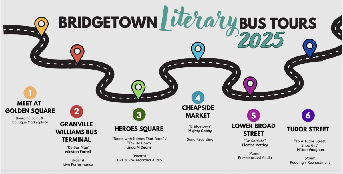A bus tour showcasing literary works by Barbadian authors that celebrate or are otherwise linked to landmarks within Historic Bridgetown and its Garrison. In other words–a tour of Barbados' capital city with its writers as your guides!
